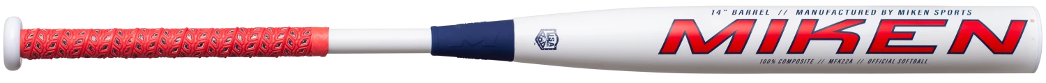 The 2022 Miken Freak USA Slowpitch Softball Bat features the standard 2 1/4 inch barrel diameter, SuperMax 1 oz endloaded swing weighting, and is legal for play in all USA Slowpitch Softball Leagues and Tournaments.
